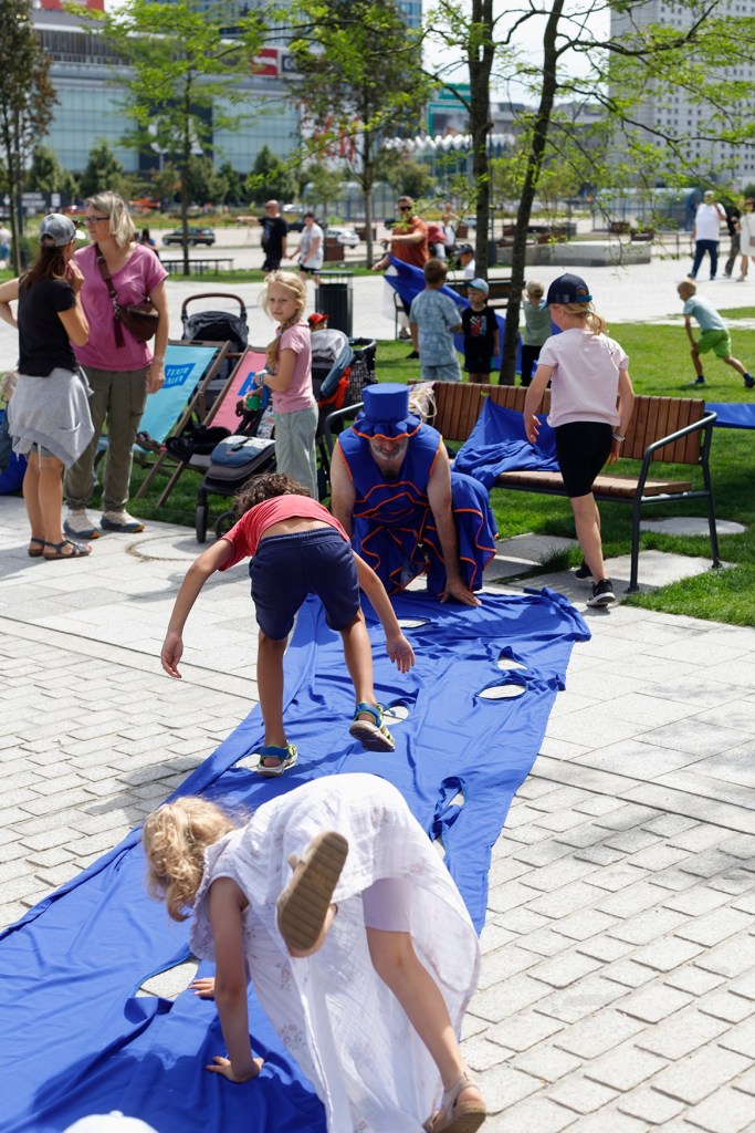 Ruchomy Plac Zabaw to nie jest zwykły plac zabaw. To ruchomy, zmieniający się organizm, który reaguje na dotyk, głos i pomysły uczestników. Towarzyszy im zespół aktorów, który prowokuje do działania i buduje wraz z dziećmi zaskakujące światy pełne szalonych wizji i przyjemności.