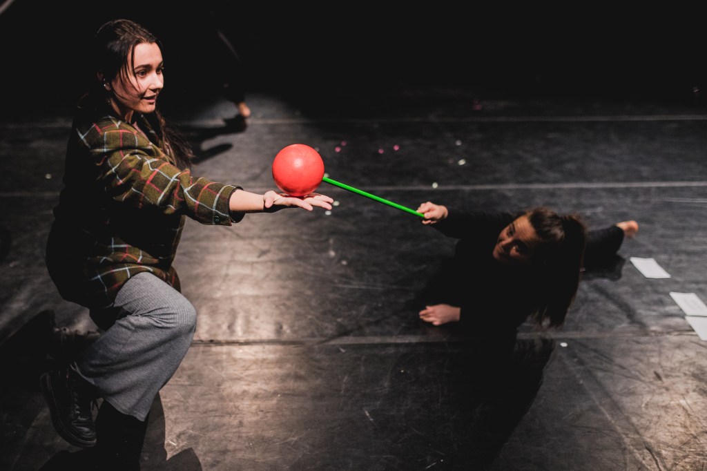 Przykładowe żywe urządzenie zabawowe powinno składać się z: osoby performującej; z obiektu plastycznego, którego dana osoba używa; ze specyficznego myślenia, w którym to osoba performująca jest bardziej nastawiona na dzielenie się z młodym widzem niż pokazywanie mu czegoś; z wiary w to, że dziecko dopowie niedopowiedziane.